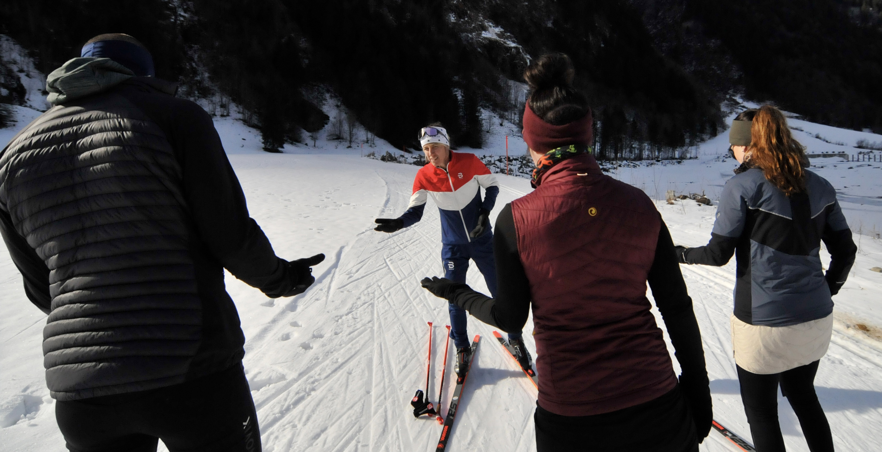 Dann nichts wie los. Gemeinsam wenden wir deine erlernte Langlauftechnik in unterschiedlichem Gelände an und verinnerlichen die Koordination von Arm- und Beinarbeit. Mit bewusster Gewichtsverlagerung und gezielten Übungen fördern wir die beidseitige Harmonie deines Langlaufstils. Wie toll, dass du die Theorie immer besser in die Praxis umsetzen kannst.